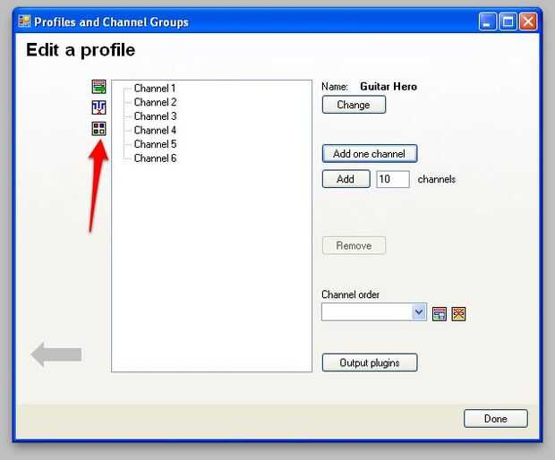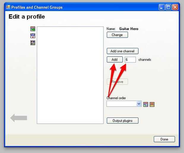 2. - el nombre Guitar Hero y luego agregar 6 canales