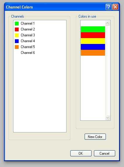 4.-verde de arrastre para 1 canal, rojo al canal 2, amarillo a canal 3, azul al canal 4 y naranja a canal 5 (deja 6 como blanco. Esto es para la sola barra de toque) y haga clic en aceptar