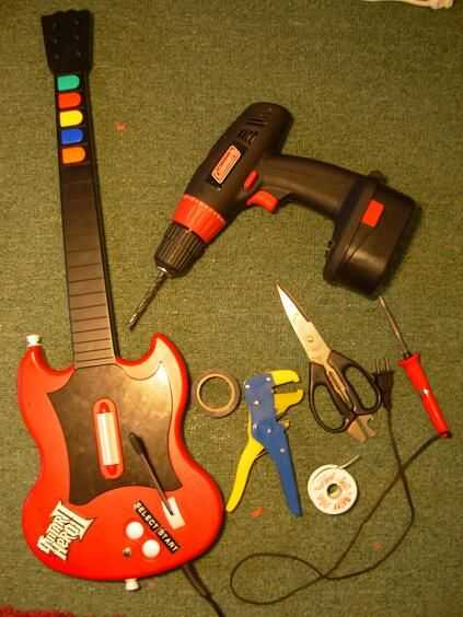 Iban a tomar un controlador de Guitar Hero vieja inútil y convertirlo en un controlador MIDI con powerchords, solos, barra de trémolo y palm muting todo en uno. Por cierto: Ninguno de este software es mía y pertenece a sus legítimos propietarios.Paso