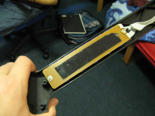 Así que para hacer los botones todavía más firme, añadir una longitud de cinta para ductos (rasgado de una anchura más pequeña) a la parte posterior de la placa de circuito como se ve en la foto. Esto parece ayudar bastante en mi opinión.