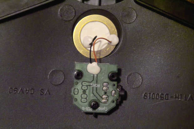 Había abierto tanto mis platillos y los comparamos. El platillo amarillo tenía claramente la mano de obra muy pobre comparado con el platillo naranja. Sin embargo, no hubo ninguna defectos obvios. Las uniones de soldadura a los piezoeléctricos miraban sonidas, la placa de circuito es muerto simple, no hay componentes en todos. Sólo conecta el elemento piezoeléctrico con un enchufe de mini-audio (mono).