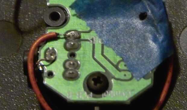 Une los cables como se muestra en la imagen para los puntos de soldadura en el circuito. (Para el platillo naranja sería una imagen del espejo.) Uno de los puntos de falla puede ser el conjunto de la placa de circuito para el mini enchufe de soldadura. Debido a esto, asegúrese de derretir completamente el punto de soldadura como se conectar los cables. Esto a la soldadura del flujo y hacer una buena conexión.