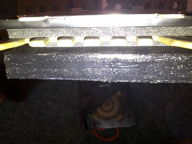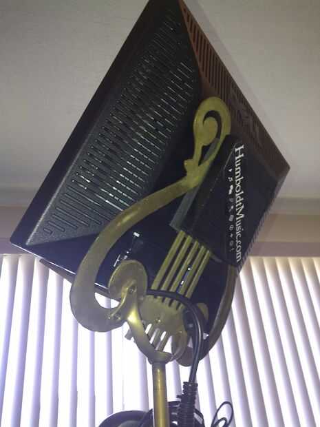 He quitado la placa metálica y había atornillado al soporte de la música con un sándwich de madera y goma espuma (ex-alfombrilla de ratón).
