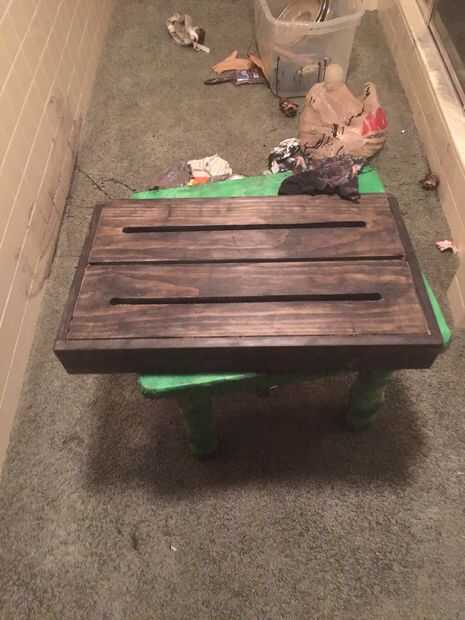Usé lo que quedaba de la mancha negro clásico con poli de que yo no había derramado en el piso. Hice un wipe en método para la primera capa. Pero terminó siendo demasiado ligeros. Utiliza un cepillo de espuma y añadí una segunda y tercera capa a todo y consiguió el acabado que me ha gustado mucho. Luego todas las piezas pintada negro mate con pintura de aerosol de metal con spray.