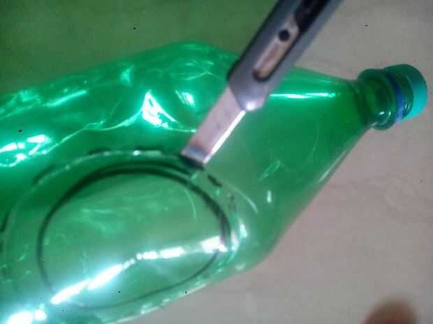 Cortar la parte superior de la botella con diámetro de 70cm con la ayuda del cuchillo.