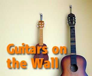 He tenido mi guitarra en la pared para las edades. Lazo de cuero simple colgando en el tornillo viejo. Siempre fue el lugar más seguro. Hasta el día que crecí y con mi esposa hemos redecorado todo el apartamento. Yeso en lugar de fondos de pantalla y mi viejo tornillo desapareció. Traté de ocultar la guitarra detrás de la cabecera, en el armario, detrás de las puertas... Ninguna manera, después traigo ukelele nuevo hogar estaba seguro: mis guitarras pertenecen en la pared...
