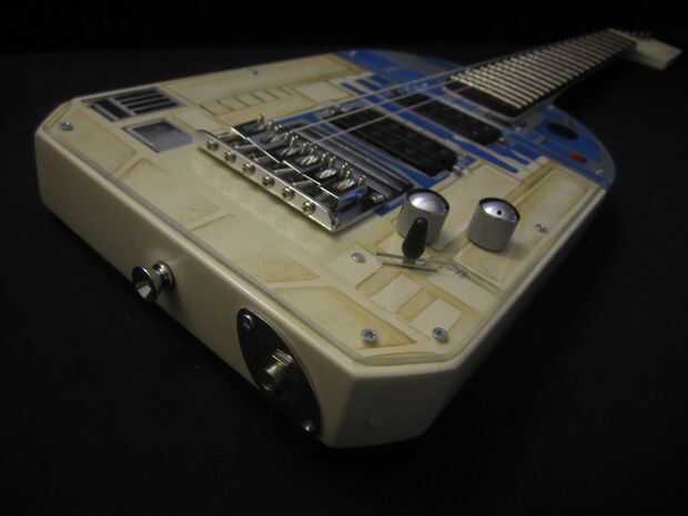 Una cosa interesante que pasa por alto en el diseño original era equilibrio. Debido a su forma, GuitarToo-D2 es realmente duro jugar sentado, y debido a que el cuerpo termina antes el traste 12 (punto de la guitarra típica de equilibrio) es muy pesado de cuello. Para rectificar esto, coloqué el colgar de la correa izquierda en la parte posterior del cuello, en vez de al final del cuerpo como la mayoría guitarras tienen. Esto permite que la guitarra se siente cuando te dejaron ir, en lugar de que se caiga al suelo.