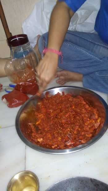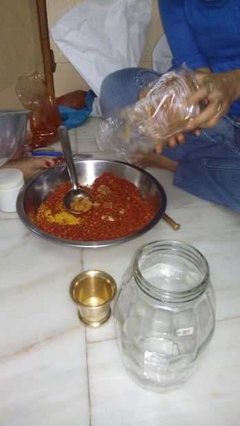 Encurtidos de mango es un pepinillo en cada hogar de la India o en cualquier toma de alimentos. Es muy sencillo de hacer pero es muy sabroso. Normalmente los mangos crudos están disponibles en los veranos; cada asimiento de casa toma orgullo en la fa