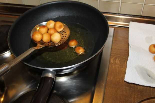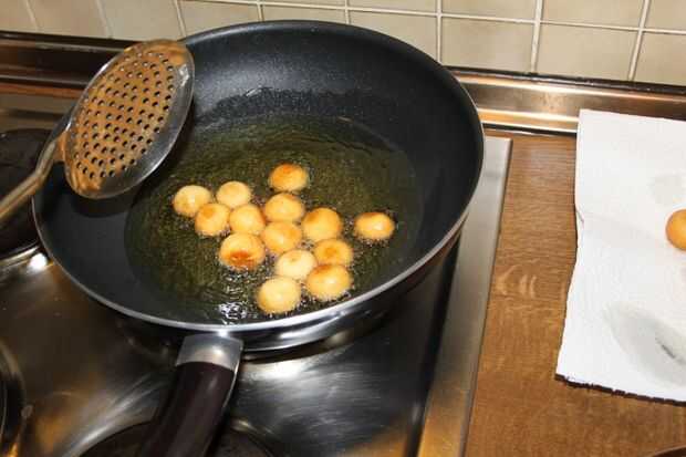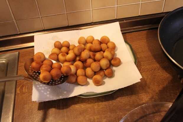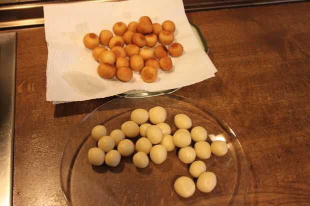 Foto 2. Colar el aceite y transferirlo a un tejido. Las bolas se convertirá en un poco más grandes, una vez que freírlos.