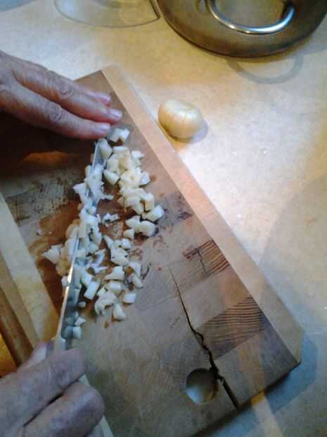 Primero corte la cebolla en trozos pequeños, cortan sus dientes de ajo en cubos muy finos.
