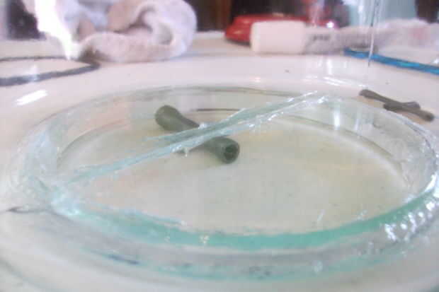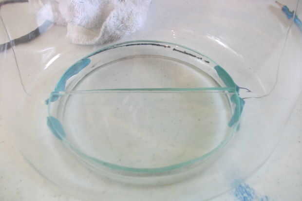 El ~ 6 litros bowl tiene un orificio de diámetro de 5 pulgadas en cada extremo. Última vez sella con un disco de vidrio de solo 5" en el exterior de la parte inferior. Nunca estaba contento con esto, ya que le preocupaba que la silicona puede un día romper y se caiga la parte inferior. También elevó la taza del otro 1/4" por encima de la base, dándole una mirada que sentí era torpe. Yo esto remediado por tener un 1/4" densamente por 5" de diámetro el disco de cristal cortado y luego cortado por la mitad, me da dos medios círculos. Entonces pude bajar estos dentro del recipiente y sellarlas juntos en el interior.