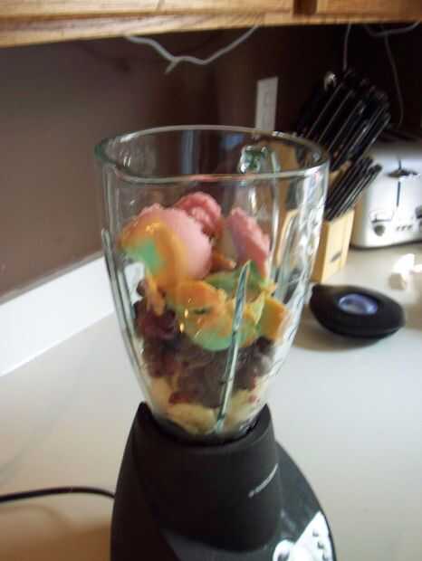 Echar todo en la licuadora. Solo lo descarga todo en allí en un gran lío.