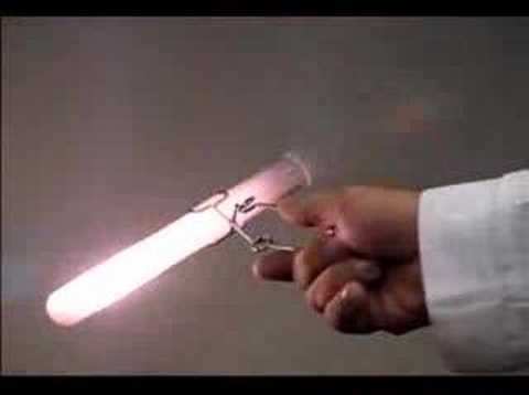 este es el experimento de Gominolas que Gominolas se añade clorato fundido, en tal ambiente rico en oxígeno con suficiente temperatura, ráfagas de Gominolas en la llama lila vigorosamente cuando contacto con clorato fundido. Gummy Bear y tubo hirvien
