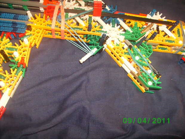 A k'nex gun shaped like the letter "S". O 5. Se hizo porque echaba de menos entrar en el torneo de Jollex y decidió publicar un arma basado en los requisitos del concurso, una pistola con gatillo complejo con partes móviles. Tiene un conector gr