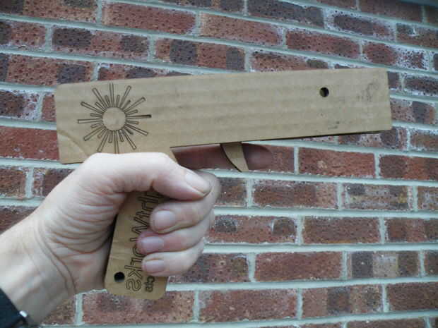 Yo estaba contento con el repintado de que hice, así que ya empecé a agregar algunos gráficos simples a la pistola y un agujero en el agarre en caso de que desee agregar una correa de cuerda o muñeca.