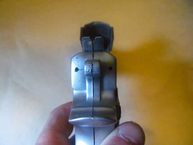 -Utilice la herramienta giratoria para cortar un espacio para el interruptor de Fw/R cerca del martillo de la pistola.