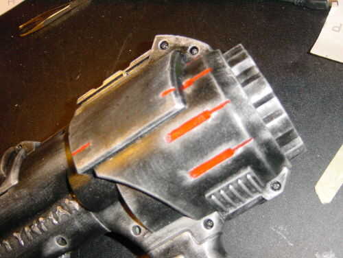 Configurar algunos detalles con pintura acrílica roja que tenía por ahí, porque creo que le queda un poco apocalíptico de esa manera.