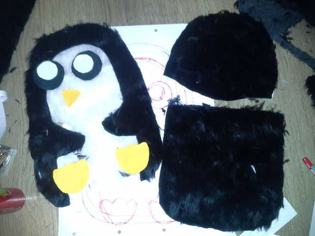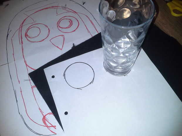 Para la cara y los pies, use el fieltro. Para obtener los ojos bonito y redondo sólo dibujó alrededor de algo redondo.