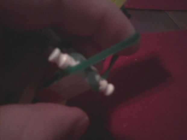 Foto 11-12: Use una banda elástica para fijar la barra blanca en el lugar. No importa modelo, solo necesita suficiente tensión para que no se deslicen.
