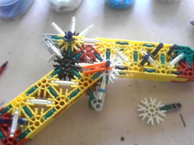Foto 2: Agregar la segunda parte de arma, deslizando sobre thru varillas, encaje en su lugar.
