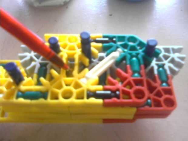 Foto 2: Añadir 1 barra verde en la parte inferior de cada uno de los conectores de 6 Centro amarillo/gris)