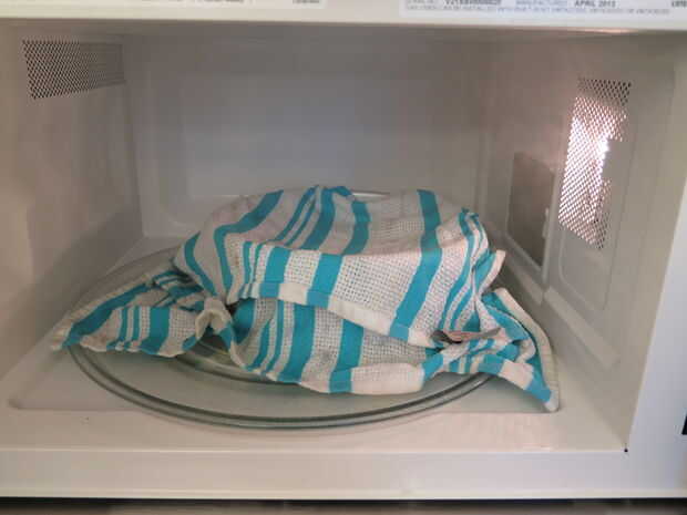 Microondas una toalla húmeda, cubrir el recipiente con dicha toalla y meter en el microondas (no, sólo para el espacio confinado) durante 20 minutos. No pico.