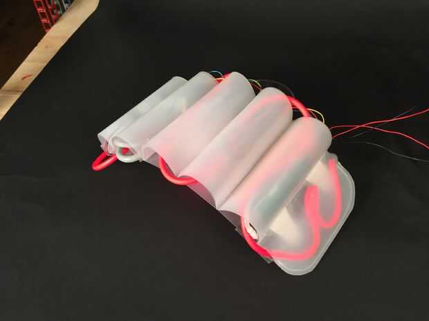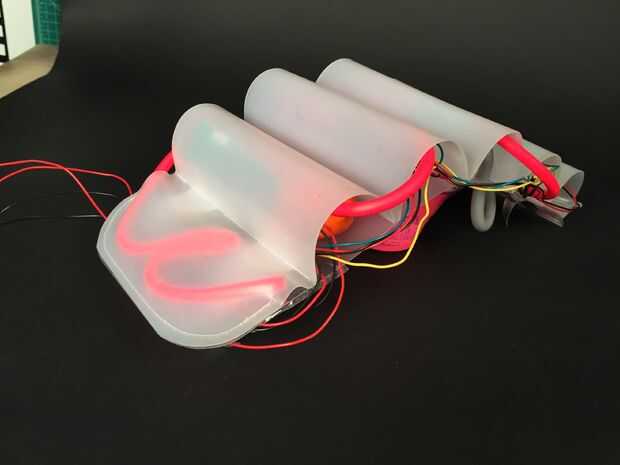 Unos meses atrás, vi los videos de los robots suaves de Matthew Borgatti (videos más abajo) y realmente estaba cautivado por ellos. Me inspiraban a pensar en construir un robot suave mediante presión neumática para la locomoción, pero como un novato a Arduino y bastidor de la silicona, decidí hacer una versión simplificada utilizando más materiales estándares, fácilmente disponibles. Este robot suave pulgadas gusano utiliza un globo del partido, un monitor de presión arterial hackeado (para la bomba, sensor de psi, etc.) y algunos del silicón de la hoja y vinilo. Un Arduino starter kit y, por supuesto! Este robot está todavía conectado a Arduino UNO (y conectado a un ordenador portátil), pero eventualmente se miniaturizarlo y transferirlo a un pro-abalorio y casa dentro del robot. También, estoy esperando para poder agregar una bomba más potente para conseguir el gusano se mueva más rápido... los videos que ves son tiempo transcurrido (10 veces más rápido). Actualizaciones respecto a seguir!