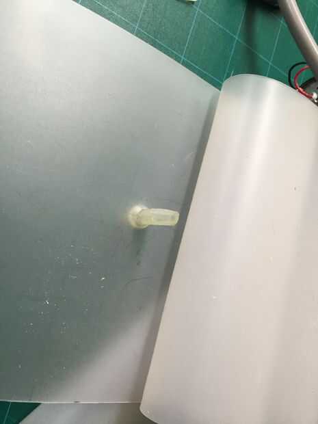 Perfore un agujero en el vinilo de la hoja para el tubo de aire (uno que sacó de la banda de brazo) en el centro del vinilo de la hoja. Enchufe el conector de plástico para el tubo de aire. El globo se conectarse a esto más adelante.
