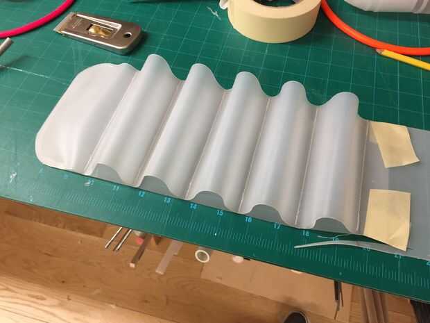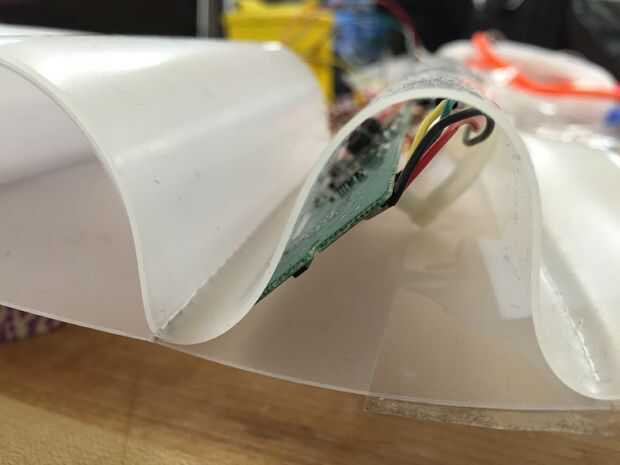 Las partes del monitor de ritmo cardíaco y el Arduino miniaturizado (ProTrinket de Adafruit) obtener alojaran dentro de cada uno de los segmentos.