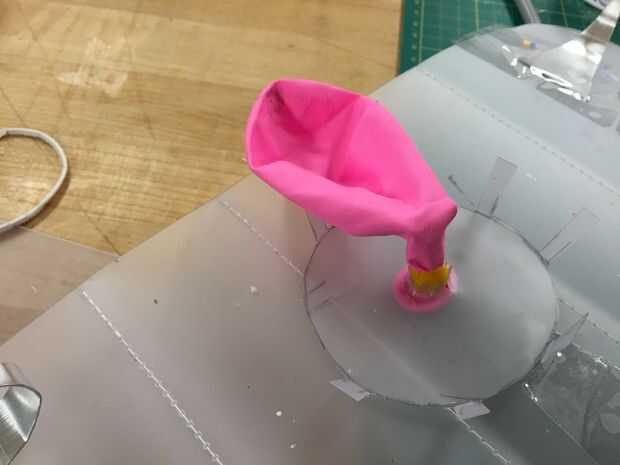 Coloque el globo en el tubo de aire con cinta para rescate.