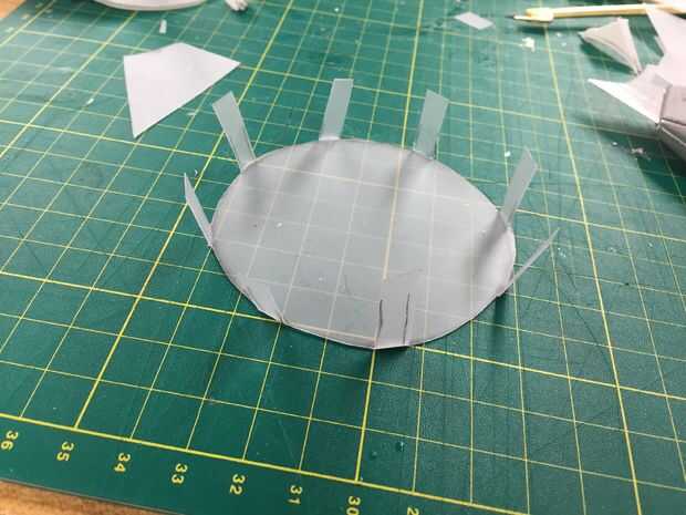 Cortar una pieza circular de vinilo para crear la parte superior del fuelle. Hacer una x-abertura en el centro para que el balón pase a través.