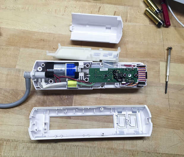 Primer paso es cortar las partes del monitor de presión arterial así ábralo quitando todos los tornillos.