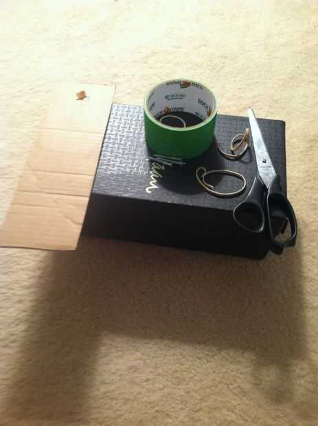 Se necesita: al menos 2 bandas de goma por lo menos 2 tornillos de una caja de zapatos tijeras Ductape A 12 por 3 piezas de cartón