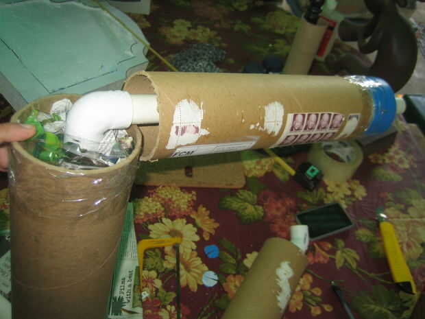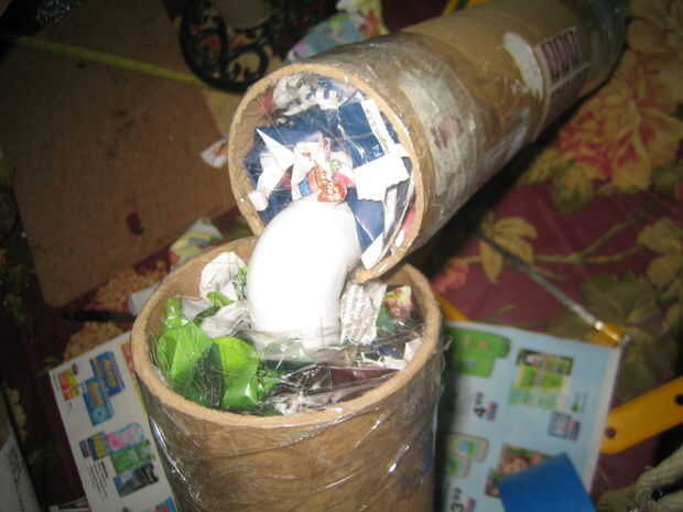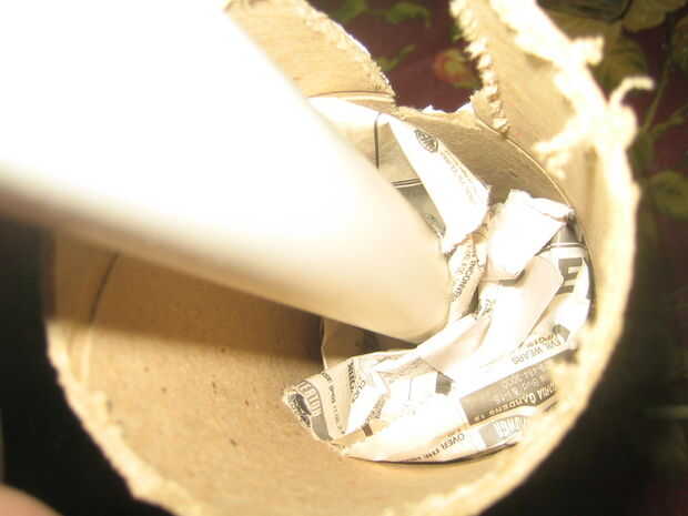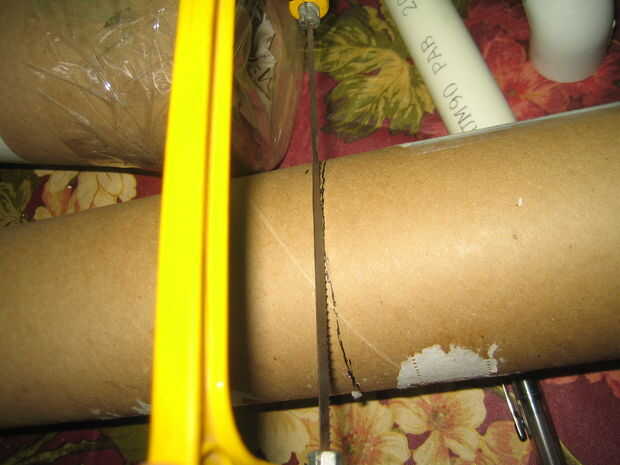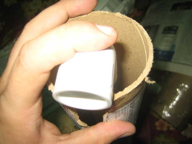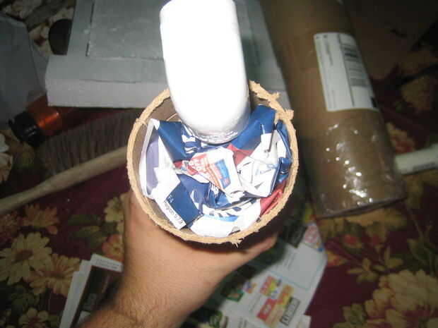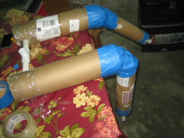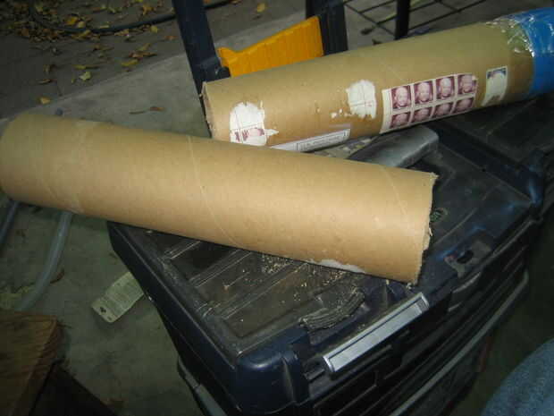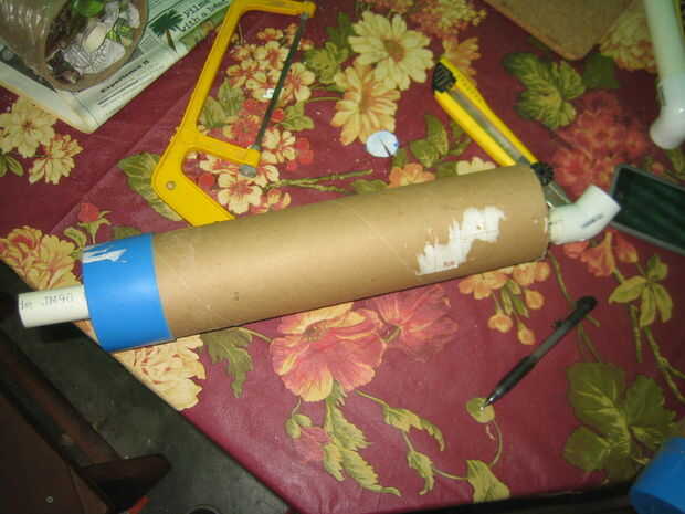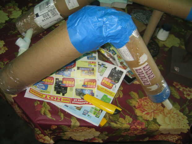 Usé una sierra para metales para cortar el tubo de envío. Después de montar el PVC en el tubo de cartón, sellar un extremo con cinta adhesiva. Después el paquete firmemente cada tubo con el periódico para que el tubo de PVC está en el centro del tubo de envío. Sello de los otros extremos del tubo de envío con el conducto de cinta una vez su relleno con papel. Luego corte un agujero en la cinta del conducto para el PVC ir a través de la rodilla y el tobillo.