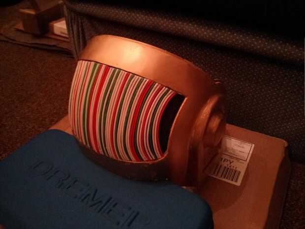 A continuación, tome el cable grueso equipo y fije la placa de alambre con pegamento caliente del derretimiento en tiras. La placa de cable terminada debe pop perfectamente dentro del casco y se debe asegurar con pegamento caliente adicional.