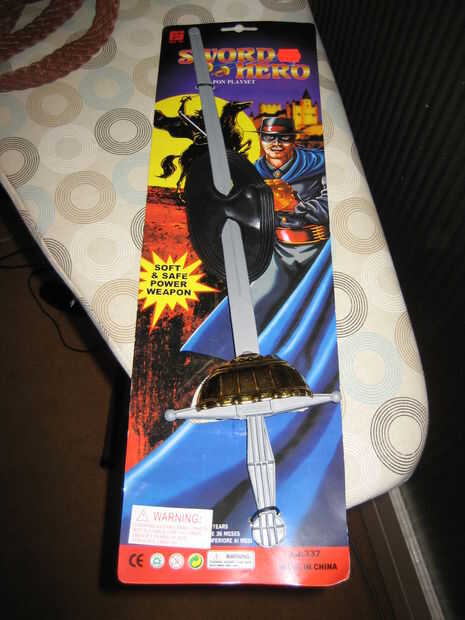 Brevemente buscar espadas de pirata en una tienda de descuento, pero no podía encontrar ninguna. Sin embargo encontramos otros espadas y debido a su precio barato, decidida comprar uno de cada uno.