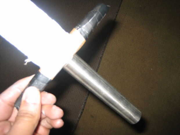 Sin embargo, esta pipa entonces hace el mango como un tubo de acero. Para que se vea más como una manija de la espada de un pirata, envuelva primero el mango y el protector cruzado con alguna cinta de la tela. Luego Envuelva unas tiras de tela marrón alrededor de la manija para producir una apariencia andrajosa.