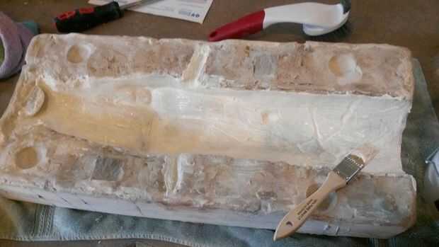 Me enteré que GWAR utiliza una parte específica 2 tipo de expansión de espuma para llenar nuevamente sus apoyos como este. el proceso es poner la pieza en su molde, fijarlo y bomba de la espuma de expansión. Cualquier exceso será empujada hacia fuera del orificio en la parte posterior del molde y puede cortar más tarde. La espuma que utilizan estaba buscando demasiado cara me así que conseguí una botella de expansión de espuma de aislamiento de la ferretería. Procedimiento de GWAR mientras el eje de soporte de madera en la espuma de montaje mientras lo rocía. Tuve que apoyar la varilla de soporte de madera para que la espuma no empuje hacia fuera mientras que expansión y curado. Yo esperé 24 horas y lo hizo estallar. Resultó gran! (Véase pic8). ¡ Pero! Unos días más tarde comenzó a implode y deformación. No destruir la pieza pero había torcido un poco. ¿NOSE si no cura correctamente en su interior y comenzó a colapsar? La espuma se adhiere a las paredes internas del látex por lo que aspira el látex abajo con él y causó algunas deformaciones funky. Se verá en el siguiente paso la deformación que muy sensiblemente retocado los ojos un poco