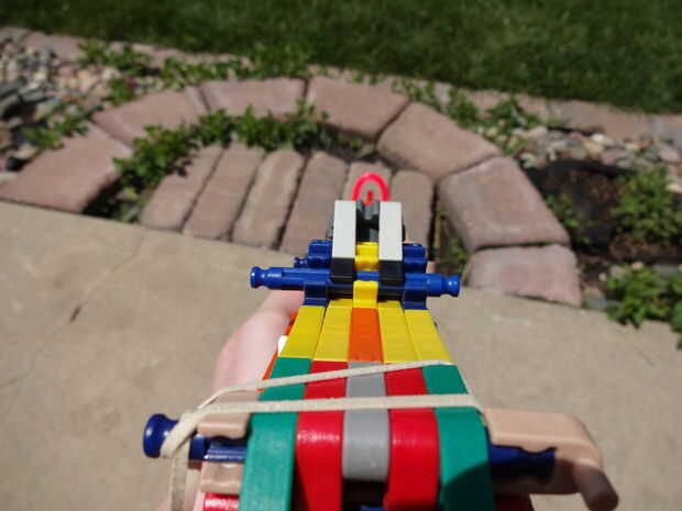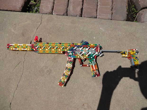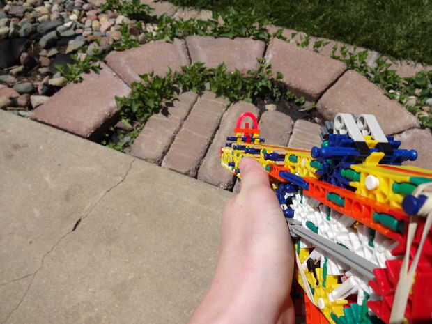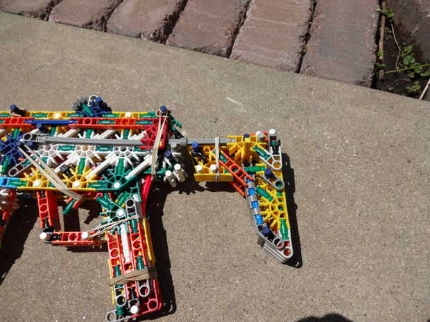 Como dije antes, la pistola es muy cómoda, pero yo diría que es más bien débil. Barras de acción son sólo una barra gris ancha, así que no es muy robusto, pero realmente es la mejor posible dadas las circunstancias. La revista puede disparar tan conectores o barras verdes y esperaría obtener 50 pies, pero eso es sólo especulación.