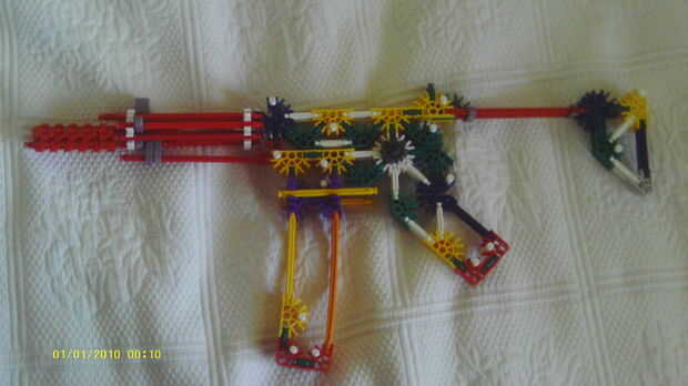 Hey guys. Sí, en menos de un día I: 1) aparte mi MP5SD, 2) construyó un prototipo de un M14 y 3) había acabado. Realmente no fue que duro y desde azul lisa me preguntó para hacer uno, aunque yo le obligue.Una vez más, este es mi K'NEX M14. Algo libre