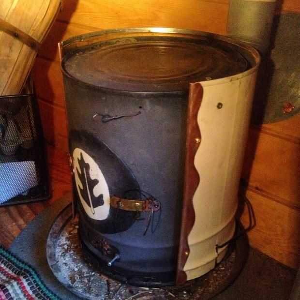 El primer cubo tiene un agujero de puerta cortado de la parte delantera, y un orificio en la parte superior en la parte posterior de la chimenea, como la fotografía, utilizando tijeras de metal, lata aka tijeras. parte del cubo del segundo hace una puerta más grande que la apertura en el primer cubo con doblado sobre los bordes gruesos doble. La parte inferior del segundo cubo es cortada con un rompecabezas, o unas tijeras si lo prefiere, entonces instalada dentro del cubo de la primera como un deflector enviando el fuego/humo a la parte delantera de la estufa antes de dejarlo salir por la parte trasera. Esta simple característica mantiene mucho más el calor en la estufa y mucho menos de las llamas en la pila.