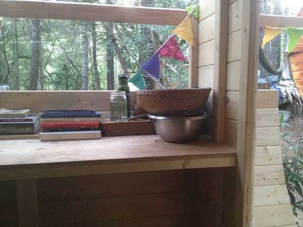 Se utilizó un cajón de la cesta debajo del mostrador para utensilios y cosas pequeñas.