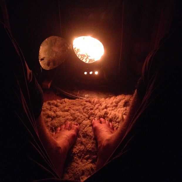 Porque la espera es tal un pequeño espacio bien aislado, cuando cuelgue una manta sobre la portada con el fuego salvaje se calientan rápidamente hasta 160 grados, haciendo un pequeño sauna para hasta cuatro personas (dos cómodamente) con su propia puerta de escape hacia la parte posterior.