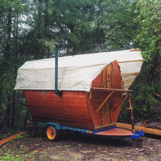Hemos hecho otro diseño de techo, uso de vigas más separados, nuestros hechos de pequeños abetos y encerado lona. Una foto de este en el carro pequeño es superior.
