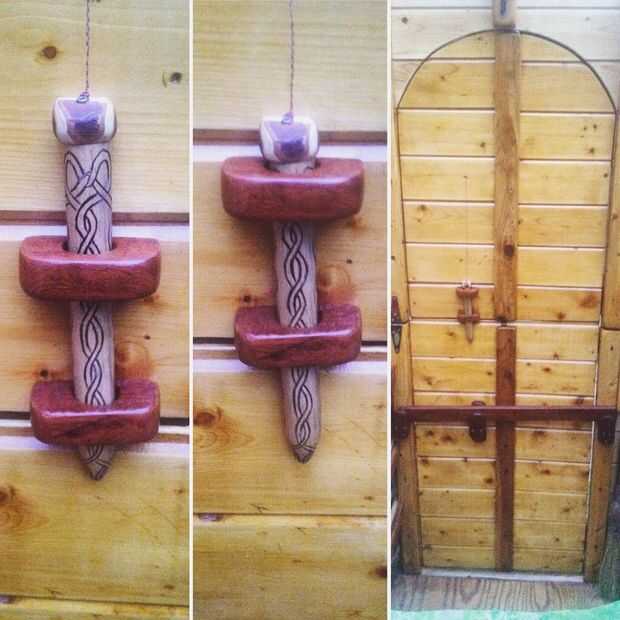 Agacharse delante de puerta montada en el bastidor del remolque.