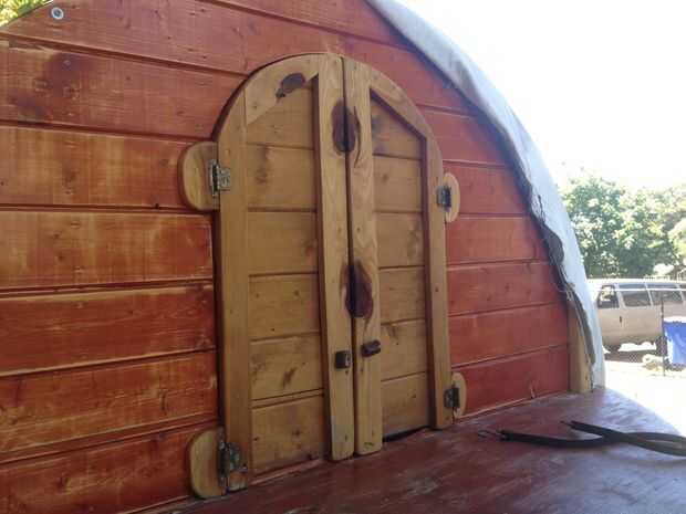 Las puertas de la victoria fueron para mí la parte más delicada. Si se cortan en un ángulo, como una tapa de calabaza, luego su instalación será mucho más fácil y su ajuste muy superior a un corte recto.
