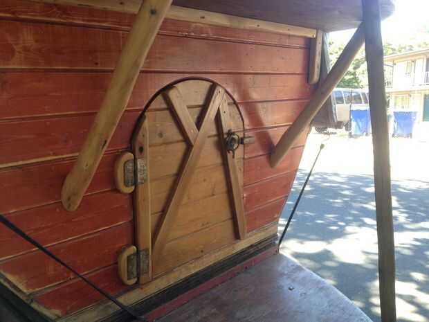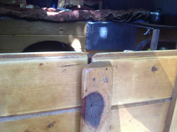 Apoyos permanentes mantienen las paredes verticales, los delanteros van en el interior, el trasero en el exterior debido a la cama. Los delanteros necesitan hacer muescas en donde sobresalen las bisagras, o usan metal a lo largo de los lados de los postes de madera, mi método preferido para el próximo carro.
