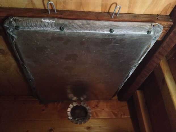 Porque es verano ahora cocinamos con alcohol y por lo tanto la estufa de leña no está en su lugar. Es el agujero en la pared de la chimenea y la parrilla del horno por encima es un gran lugar para poner macetas de caliente y seco cosas hacia fuera y mantener calientes otras cosas. Nuestra cocina se hace fuera de 5 galones cubo (otro instructable) y tiene su propia protección contra el calor, la chapa que ves fue puesta una diferente "ultramar fabricado" estufa, que culo aspirado y por lo tanto fue substituido.