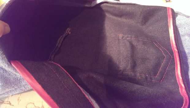 El bolso está forrado en mezclilla para dar un poco más de estructura y estabilidad a la pieza.