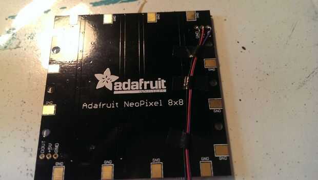 El Neomatrix es una matriz de LED RGB de 8 x 8 ws2812, hay solamente un sistema de cojines de la soldadura para.